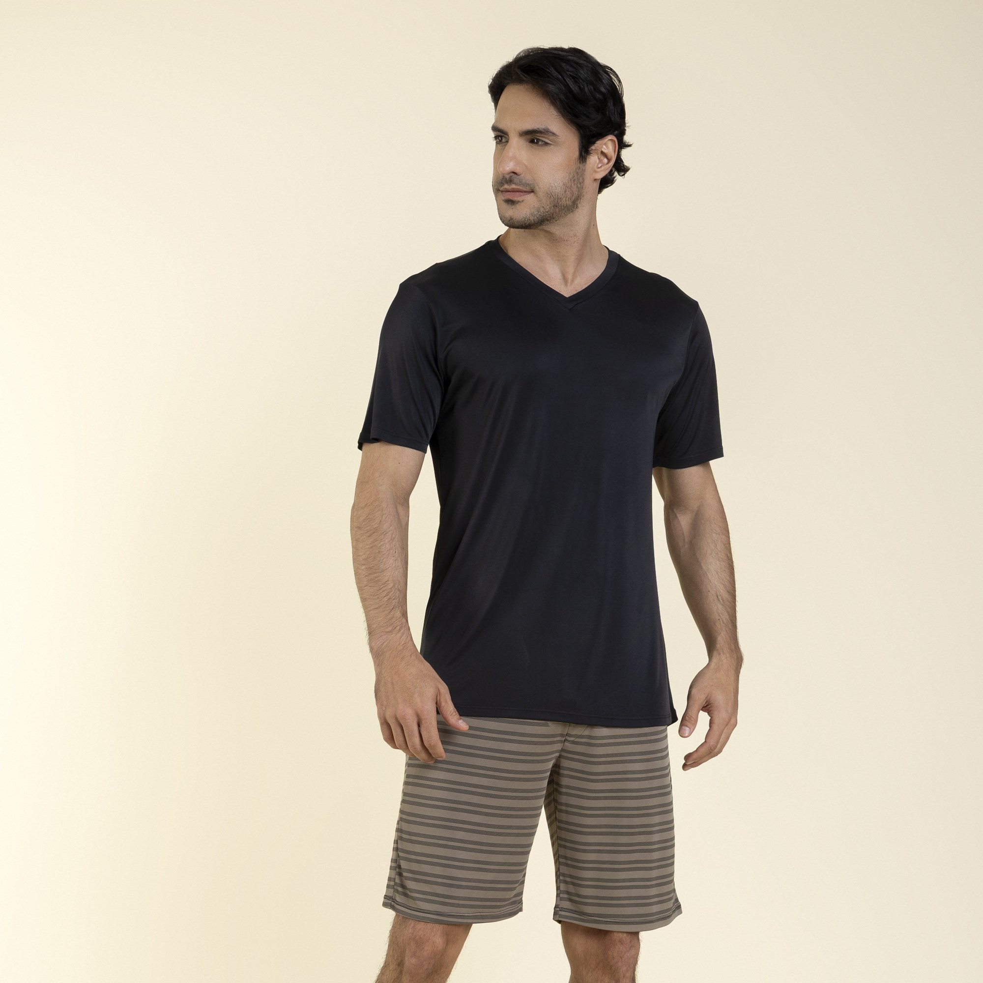Pijama Masculino Curto Poliamida Listrado Caqui