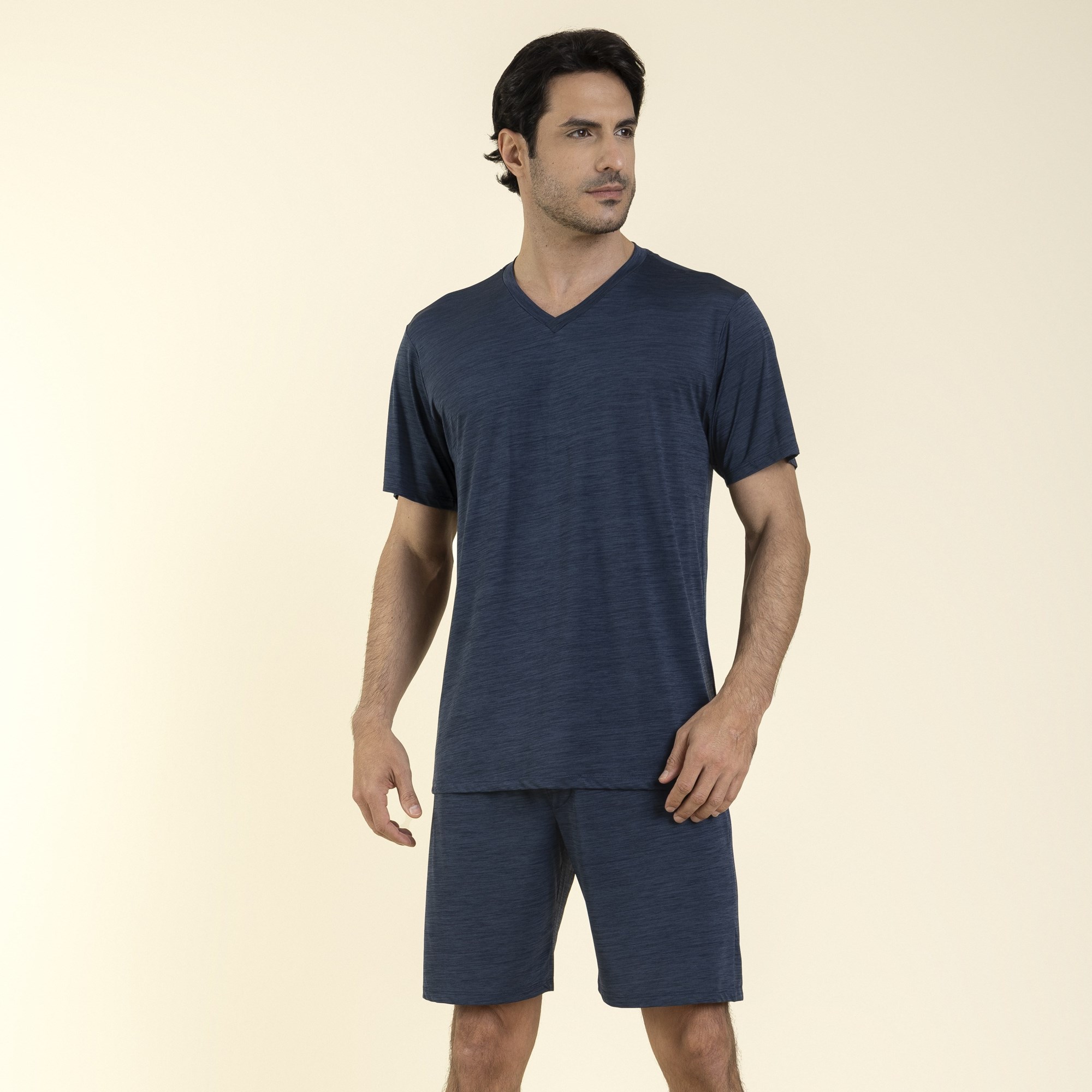 Pijama Masculino Curto Poliamida Stripes Azul Ocean