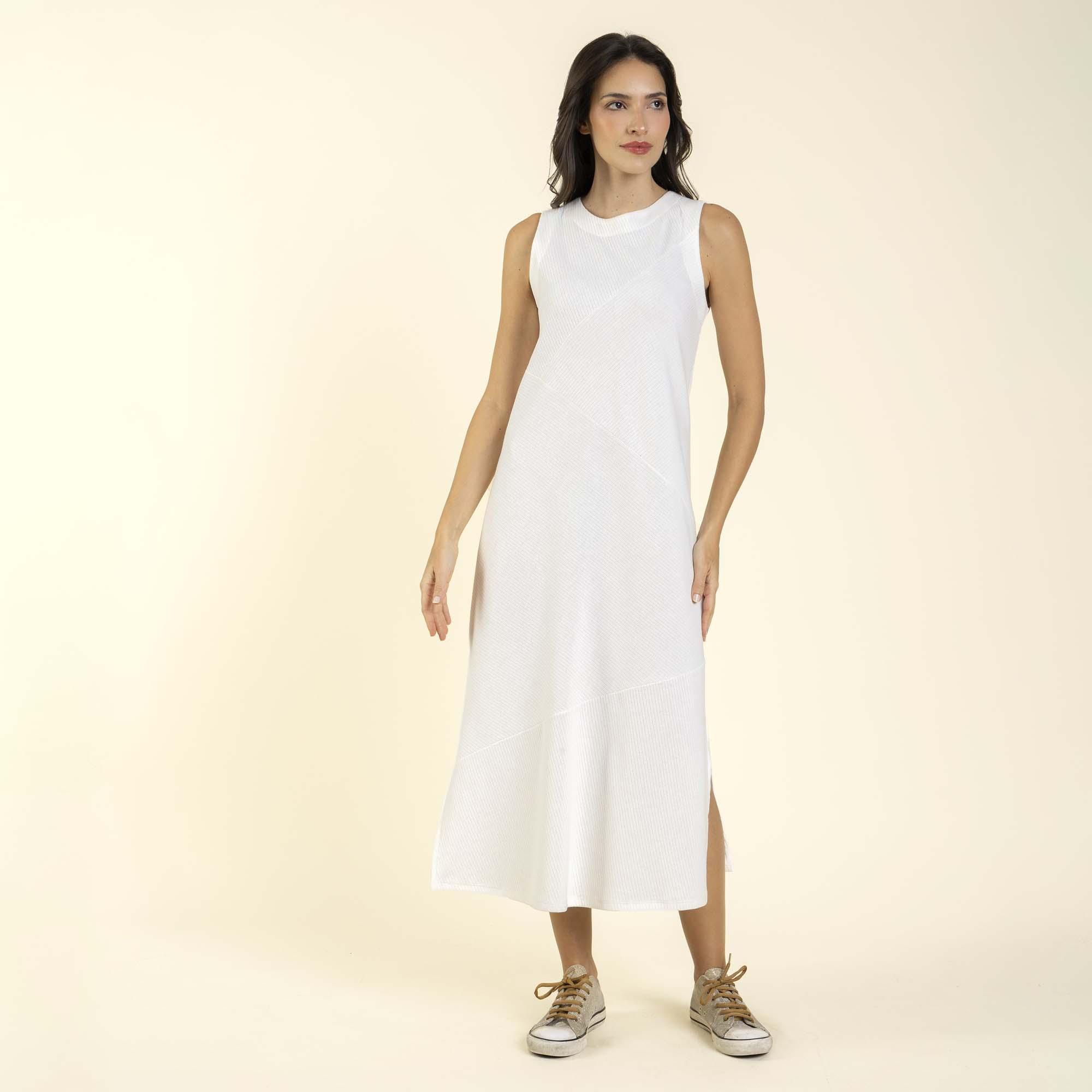 Vestido Midi Piquet Canelado Off White